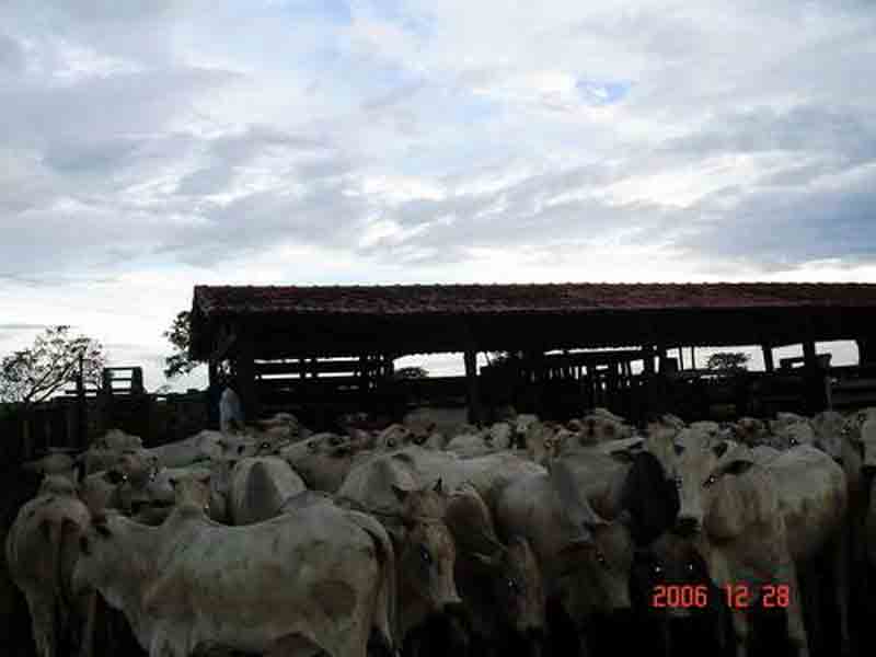 - 01 curral com capacidade para 1500 bois, sete divisões, contendo brete, balança, tronco coberto, embarcador etc. totalmente em aroeira.