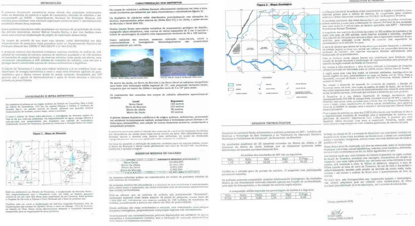 Para uma Indústria com capacidade de fabricação de 2.000 Milhões de toneladas de Cimento ao ano, o que é uma Indústria de grande porte, as jazidas tem suporte para 175 anos de extração.