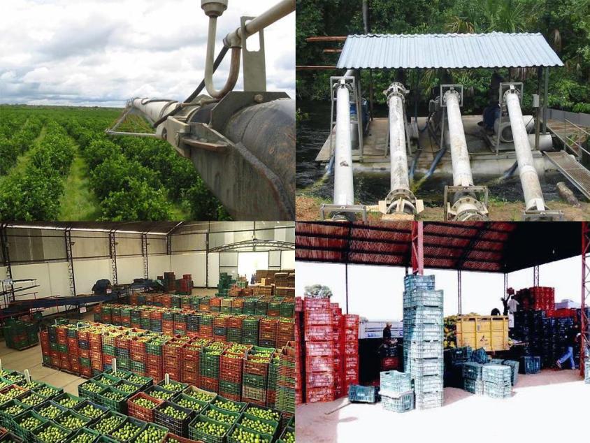 BENFEITORIAS: PREDIO ESCRITÓRIO/ALMOXARIFADO.................................. 525,00 M² BALANÇA RODOVIÁRIA DE 70.000 KG............................. 01 UNIDADE OFICINA MECÃNICA.....................................................................460,00 M² DIQUE DE LAVAGEM............................................................ 01 UNIDADE POÇO (TUBULAR) COM BOMBA SUBMERSSA................ 01 UNIDADE TANQUE DE ESTOCAGEM DE DIESEL...................... 15.000,00 LITROS TANQUE ESTOCAGEM GASOLINA...............................2.000,00 LITROS TANQUE ESTOCAGEM OLEOS USADOS.....................5.000,00 LITROS CASA SEDE......................................................................................... 290 M² CASA DE HOSPEDE........................................................................... 185 M² CASAS DE ADMISTRAÇÃO E TÉCNICOS............................ .......... 43 M² ALOJAMENTO ADMINISTRAÇÃO E TÉCNICOS................ ........ 335 M² ALOJAMENTO PARA 200 TRABALHADORES.- .............. ........... 965 M² BANHEIROS E ÁREAS DE SERVIÇO.............................. ............... 120 M² ALOJAMENTO OPERADORES CAPTAÇÃO................ ...... ........ 148 M² GALPÃO APOIO PARA PIVÔS...................................................... 1.100 M² PRÉDIO DO PACK-HOUSE ....................................................... 2.125,00 M² DEPÓSITO DEFENSIVOS..................................................................... 65 M² BALSA FLUTUANTE PARA 04 BOMBAS............................. 01 UNIDADE BALSAS FLUTUANTES PARA 01 UNIDADE.................... 04 UNIDADES BALSAS FLUTUANTES SISTEMA BUSTER...................... 07 UNIDADES ADUTORA PRINCIPAL.................................... ...................... .......... 1.850 M CANAL PARA ALIMENTAÇÃO EM TERRA......................... ....... 4.300 M PIVÔS CENTRAL COM PAR IRRIGAR 100 HÁ..... .......... 15 UNIDADES CASA DE FORÇA P/ QUADROS COMANDOS PIVÔS.. .. 15 UNIDADES REDE DE ELETRIFICAÇÃO INTERNA ................ ..................... 24.000 M REDE ELÉTRICA PARA ALIMENTAÇÃO DA FAZENDA....... .... 25.000 M CASA DE MEDIÇÃO EM ALTA TENSÃO............................... 01 UNIDADE LAVOURA PERMANENTE DE LIMÃO IMPLANTADA..... ....... 300.00 Ha