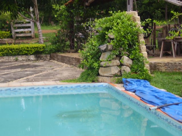 Arvores grandes e muita sombra na entrada da casa, muitas plantas de frutas, jardins, gramado, área de churrasco com quiosque e barzinho, área de lazer com varanda e piscina 5x10m em vinil com cascata, estrutura para sauna e vestiário e bela vista da serra e do vale, caixa dagua com capacidade para 15.000 litros...pés de coco, laranja, limão, manga, acerola etc. Possui ainda casa de caseiro com dois quartos, cozinha, sala e área de serviço. Quarto de hospedes com dois cômodos área de fogão a lenha, banheiros masculino e feminino e canil. A casa principal possui varandas com mesa de sinuca, sala de dois ambientes, cozinha, no andar superior tem sacada e uma suíte máster com 50 metros quadrados contendo quarto, closet e banheiro com hidro massagem. A casa e de tijolinhos aparentes, feita na laje e construção sólida sem nenhum infiltração ou defeitos como rachaduras, e etc.